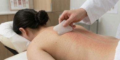 A smooth-edged tool is used to gently scrape the skin, helping promote lymphatic drainage, reduce muscle tightness, and improve circulation. Commonly used to ease neck and shoulder tension, stiffness, and symptoms related to colds or seasonal allergies.